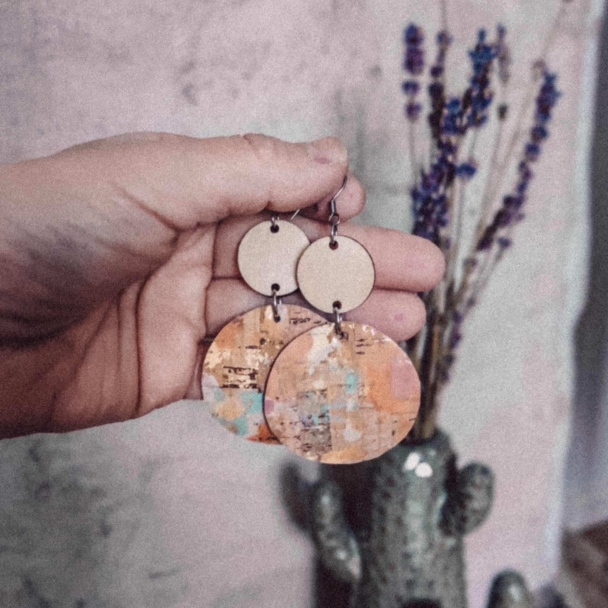Jokainen koru on erittäin uniikki ja korkkinahan kuviointi, kohdistus ja värit vaihtelee eri korvispareissa, tässä nimenomaisessa värissä erittäinkin paljon. Takaosa on yksvärinen. Mikäli haluut varmistaa tietynlaisen värityksen tai kuvioinnin, otathan yhteyttä ennen tilaamista.