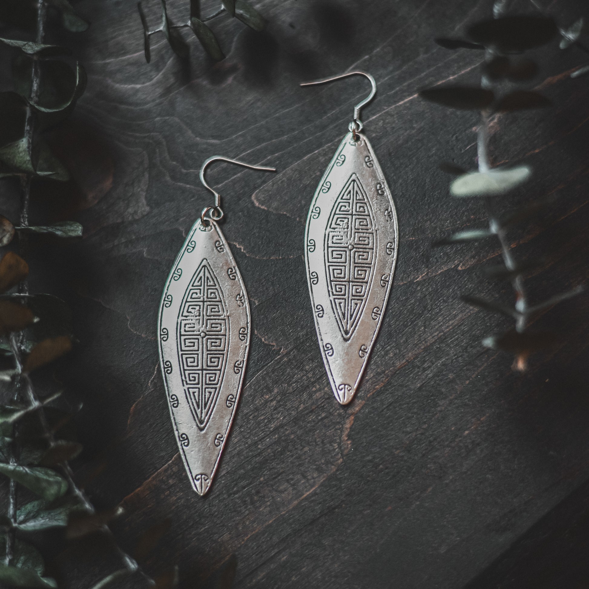 Nimi Jasira tarkoittaa räväkkää ja rohkeaa ja sitä nämä korvikset ilmentää! Graafiset kuviot kertoo kantajansa suoruudesta, selkeydestä ja konstailemattomuudesta ja korun reilu, mileti 8cm:n pituus varmistaa että nämä korvikset ei jää käytettäessä hiusmeren sekaan piiloon.